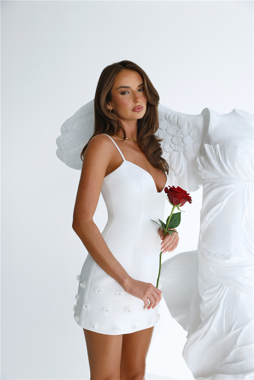 Step into elegance with The Story Unfolds Mini Dress. Featuring a fitted waist, flared skirt, floral appliques, and structured satin, this mini is perfect for parties and special occasions. Pair with strappy heels and a chic clutch to complete the look.